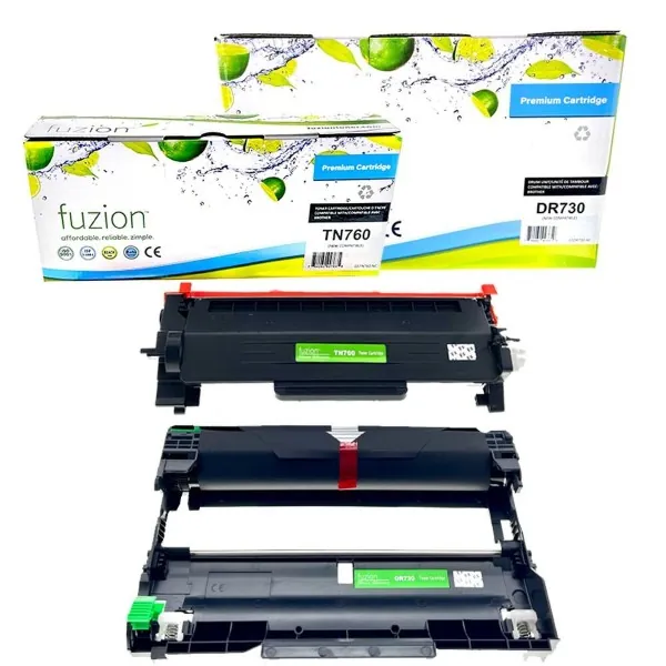 Fuzion Compatible Brother TN760 / DR730 Black Toner & Drum Combo