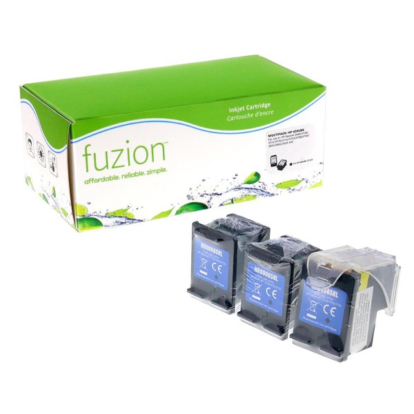 Fuzion Remanufactured HP 65XL Black High Yield Infinite Ink Cartridge Kit – 3 Replacement Ink Tanks & 1 Reusable Printhead